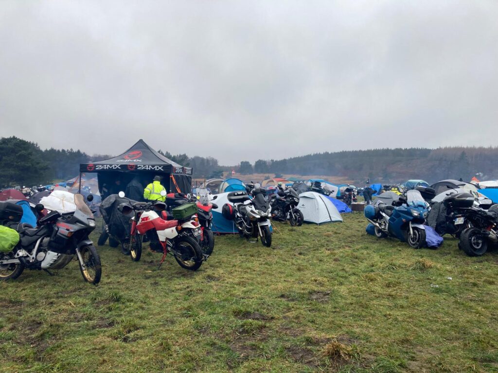 Un bon petit déjeuner, café chaud à l’abris dans ma toile de tente, la journée va commencer un peu comme par habitude, aller chercher quelques morceaux de bois, trainer seul, en groupe, en binôme sur le champs à la recherche de la moto la plus jolie, la plus improbable du moment.